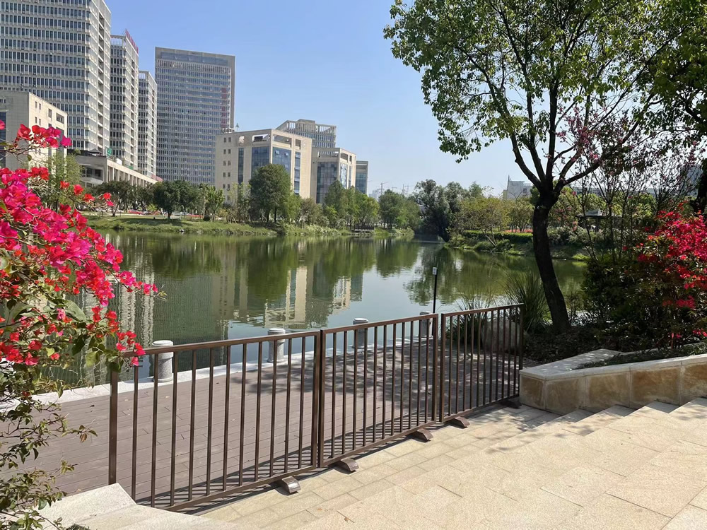 施工內(nèi)容:河邊圍護(hù)樁施工、給排水、園路及小廣場(chǎng)、碼頭、釣魚臺(tái)、鋪裝等景觀綠化及附屬工程。整個(gè)園區(qū)占地面積約23175.38平方米,其中建筑占面積2090平方米,主道路面積3653平方米,鋪裝面積7650.38平方米,綠化面積10082平方米。